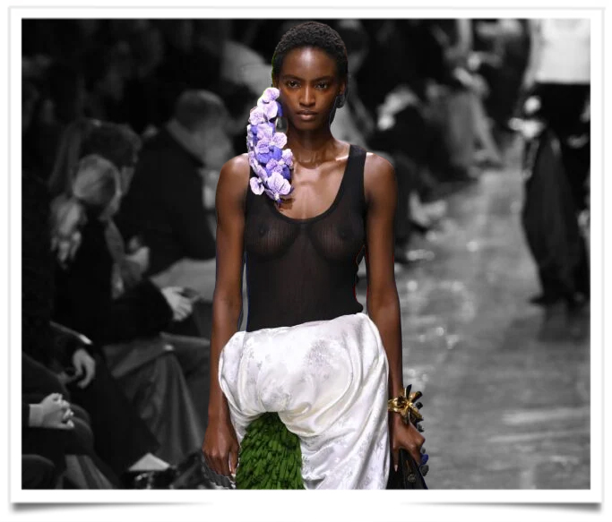 La référence à une couture « à la Vincenzo » artisanale en apparence, expressionniste dans l’intention aurait pu promettre un geste radical. Mais ici, le radical frôle le désincarné. Le corps n’est plus support du vêtement, il devient prétexte. Une ligne à peine habitée, une abstraction maigre sur laquelle tout glisse sans jamais s’ancrer. Pour lire plus cliquer ici