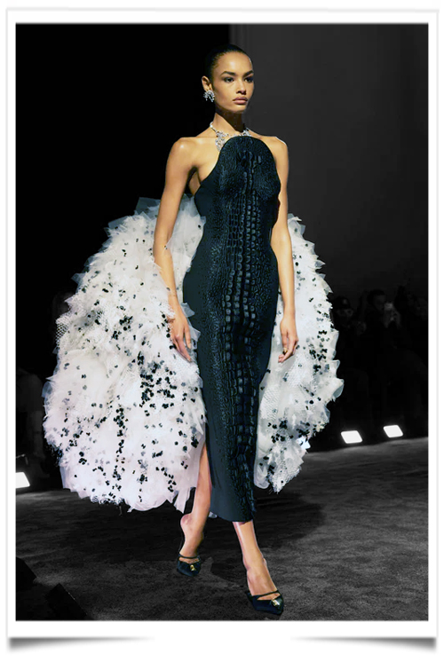 Il était une fois, dans l’Éden façonné par l’Orient, un jardin que ni le temps ni la pesanteur du moment ne pouvait freiner. Là, sous un ciel d’influences de l’empire du milieu, Jonatan, à la manière d’un poète solitaire, confia à la couture le soin de dire ce que les mots n’osent qu’effleurer. C’était à l’heure où le jour se penchait sur l’après-midi, les familiers de la maison et les voyageurs fidèles se retrouvèrent dans la cour du Musée Rodin, sanctuaire de marbre et de silence. Là, un plafond, suspendu de miroirs et de fleurs, capturait les regards comme un lac immobile capte le ciel. Pour lire plus cliquer ici