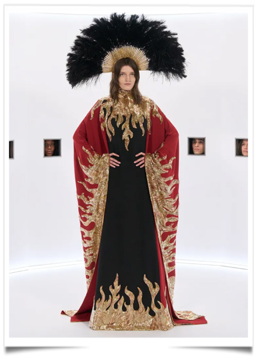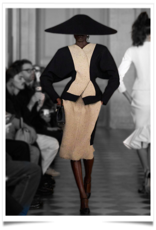 Jacquemus revisite le « New Look » de Dior sur la croisette du musée Picasso en le cosmétisant, enfin bref en le citant. Ses équipes exécutent pendant que lui orchestre, car il ne coud pas le petit « Salo nnais », il ne dessine pas, mais sait très bien pointer. Les boucles d’oreilles empruntées à Schiaparelli comme deux pinces de crabe passent pour un hommage, ainsi que le manteau rouge qui devient soudain un « clin d’œil », comprenez : une révérence opportune à la mort de Valentino. Chez Jacquemus, tout est référence, rien n’est d’origine, et l’émotion sert surtout de vernis conceptuel. Pour lire plus cliquer ici