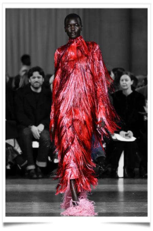 Je vous préviens de suite ; ce texte n’est pas pour les bimbos incultes. Il advient, à chaque itération saisonnière, une proposition vestimentaire qui réinscrit avec une soudaineté quasi apodictique la raison d’être des grandes maisons. Cette saison londonienne, ce fut celle-ci. La créatrice, toujours affranchie d’un vaste atelier, a livré une série qu’elle qualifie « d’illustrations de la beauté des végétaux en leur apogée anthésique » et d’infime sortilège « . Illustration, en effet, est le terme idoine. Mode, beaucoup moins. Pour lire plus cliquer ici