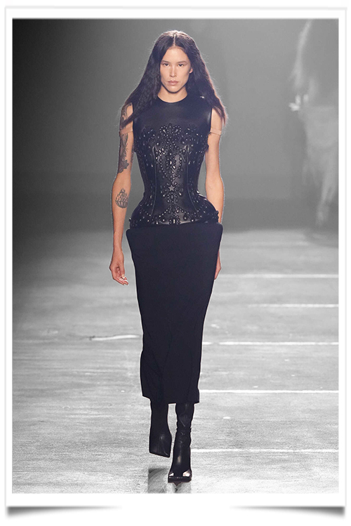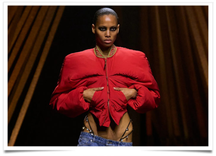 Miguel Castro Freitas, comme un chevalier surgissant d’une longue marche à travers le royaume de la mode, a éprouvé ses ciseaux chez les plus grands comme Galliano, qui lui apprit le vertige de l’excès, comme Simons, qui lui transmit la rigueur du rien. Il entra dans la maison Mugler avec cette double ascendance, portant en lui les fastes et le vide, comme deux rives d’un même fleuve. Pour lire plus cliquer ici