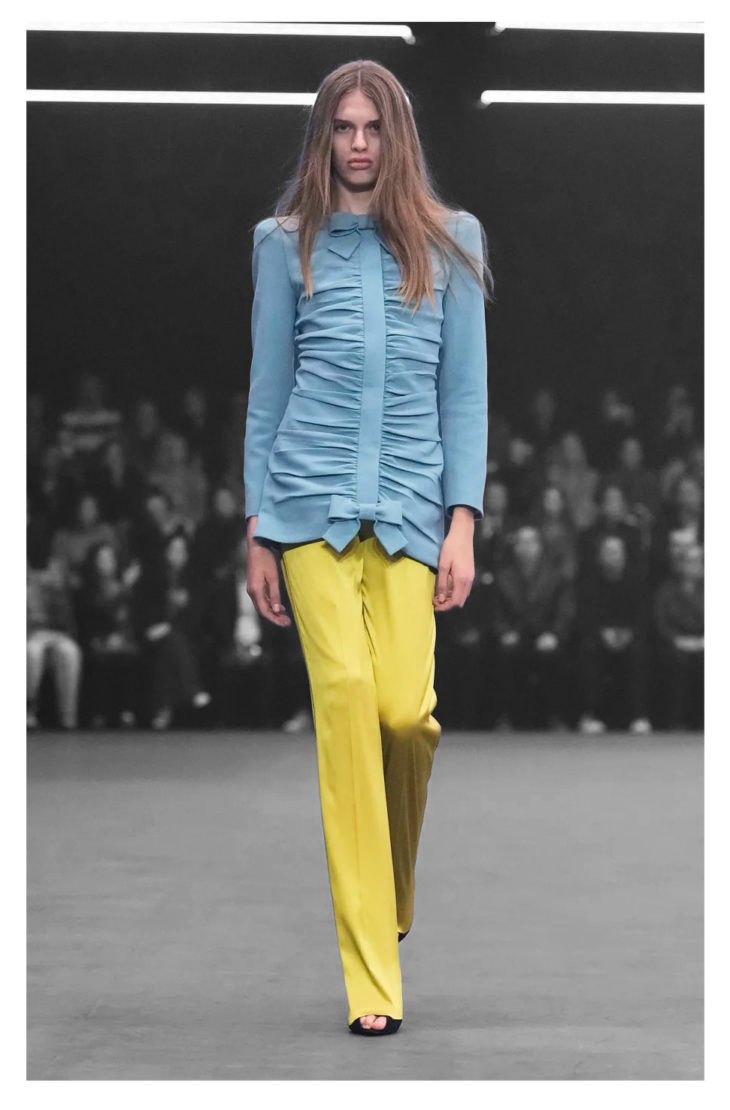On dit souvent que la maison Prada aime prendre des risques, mais avec cette collection, tellement en avance sur son temps, elle ne croisera jamais ses contemporains, elle se perdra sur la route d’une réflexion de palefrenier, (je panse donc j’essuie). Ici, la « Pradamania Raf », l’ex de chez Dior, semble avoir confondu audace et accident visuel. Ce défilé restera sans doute dans les mémoires, mais comme un concentré de mauvais goût soigneusement emballé dans du gros-grain. Pour lire plus cliquer ici