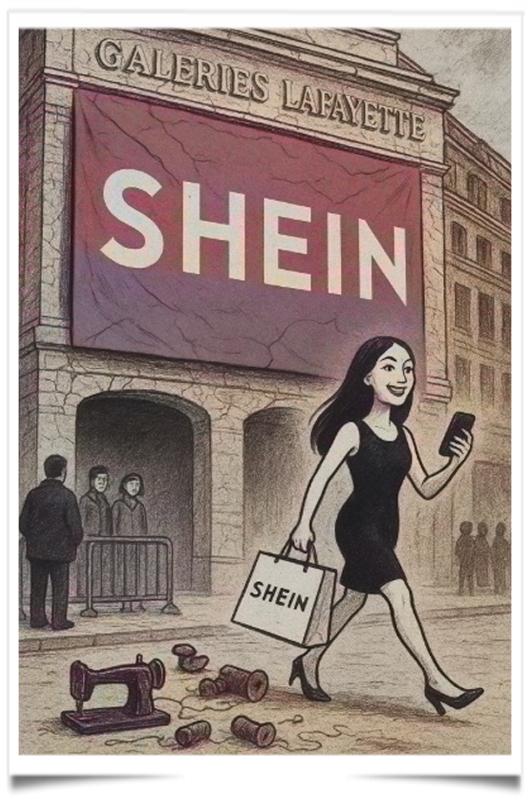 Shein aux Galeries Lafayette ! Eh bien oui, pourquoi pas ? Quand on en est arrivé à transformer une ex-secrétaire en “influenceuse de mode” une personne qui n’a jamais mis un pied dans un atelier ni touché un patron de couture, pourquoi s’arrêter là ? Après tout, dans cette mascarade, chacun peut jouer à la mode comme on joue à la marchande. Plus besoin de métier, plus besoin de savoir, plus besoin de tradition : il suffit d’un badge et d’un compte Instagram. Pour lire plus cliquer ici