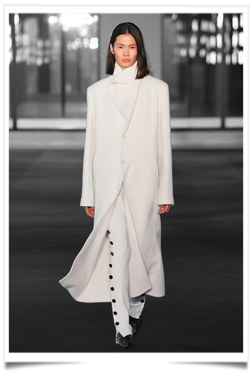 Sous les voûtes gothiques, le Collège des Bernardins, où la pierre tremble encore par les siècles disparus, avec ses arches séculaires, semblaient recueillir cette mode dépouillée de ses frivolités et en faisaient liturgie. Ce n’était point un défilé, mais une initiation silencieuse, où l’élégance masculine, ramenée à ses principes premiers, s’offrait comme une croyance douce, presque monastique, à laquelle l’âme consent volontiers à se livrer.Pour lire plus cliquer ici