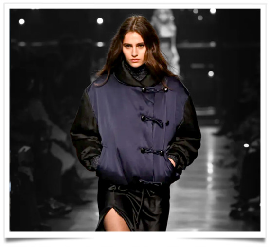 Burberry, qui évoque pour les « Froggies » à la fois la pluie et le flegme britannique, regarde la Fashion Week de Londres sous son ciel le plus fidèle, celui qui oblige l’homme à se souvenir qu’il n’est qu’un passant sous les nuages. Ainsi, nous réalisons que le défilé a été conçu comme une promenade d’automne, où le parapluie joue le rôle que tient l’éventail dans les shows de Milan : un objet modeste, mais chargé de civilité et de désir. Pour lire plus cliquer ici