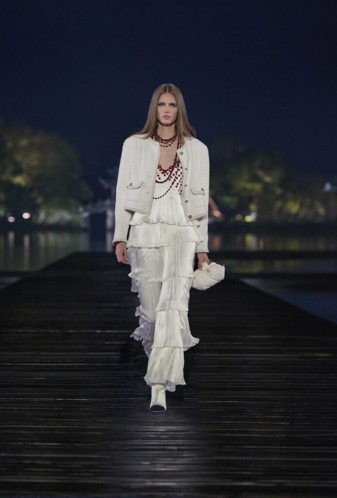 Et concernant la collection très boutique, un magasin de sacs de luxe pour chinoises riches et milliardaires, qui veulent du prêt- à-porter pour les boîtes de nuit, mettant en avant un patronage mal fagoté. Un moment qui m’a étonné avec cet article dans « Rustica » qui titrait « Comment se faire grossir le melon ? » Mais, finalement, la certitude est l’ennemi mortel de la tolérance. Ces Chinoiseries nous donnent un luxe sans doute, et sans doute, il n’y a pas de mystère, et sans mystère, il n’y a plus rêve. Ici, le public, cerveau en main, filme et regarde par le prisme d’un téléphone portable, et même l’AI ne fera pas, de cette collection, un moment sublime.