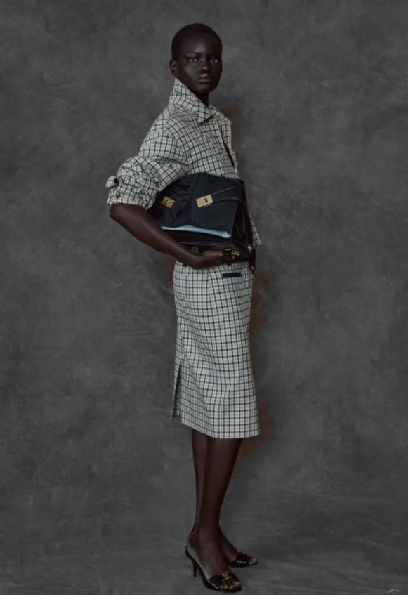 Puis, venaient les accessoires, qui sont le cœur battant de la maison, et pour Davis, une sorte de correspondance intime avec tout ce qu’il ne dit jamais. Il y revisitait ses créations phares comme on reprend une lettre qu’on n’a pas eu le courage d’envoyer. Le sac Hug, le Soft en gros-grain, le Gancini à double rabat étiré comme un souffle qu’on retient. Sans oublier ces cabas immenses, capables d’emporter toute la gamme et, avec un peu d’audace, les doutes du matin.