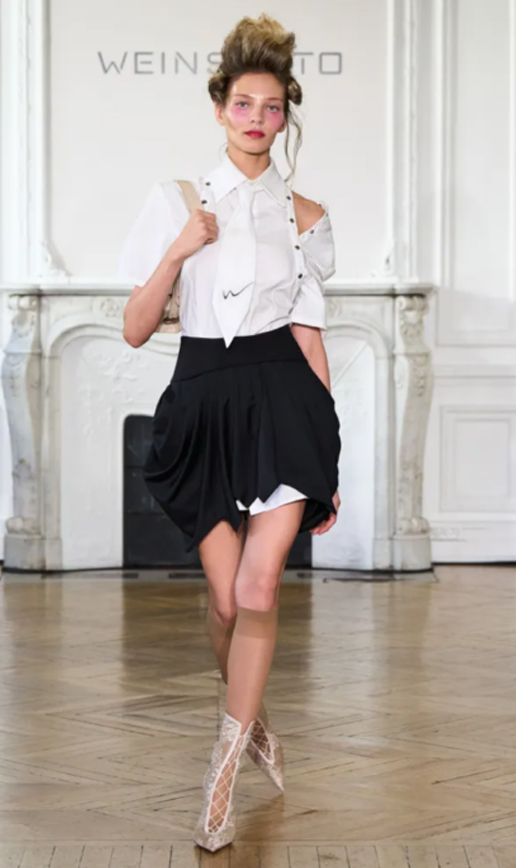 Weinsanto, autoproclamé héritier de Dior, ressemble moins à un couturier qu’à un faussaire en mission. Ses robes ? De véritables insultes aux tissus. Importables, informes, indécentes, elles oscillent entre la nappe de cantine tâchée et la housse de canapé des années Giscard.