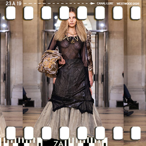 Cette collection est née d’un serment secret entre le faste d’hier et la vigueur d’aujourd’hui (nous dit la créatrice). Aux splendeurs de la cour de France, celle-ci a emprunté les fastes, les brocarts, les galons solennels, ainsi que les croix radieuses ; mais loin de les laisser dormir dans la poussière des palais, elle les a dressés face à l’élan sauvage de notre siècle, pour qu’ils s’affrontent et se fécondent dans une étreinte éclatante. Pour lire plus cliquer ici